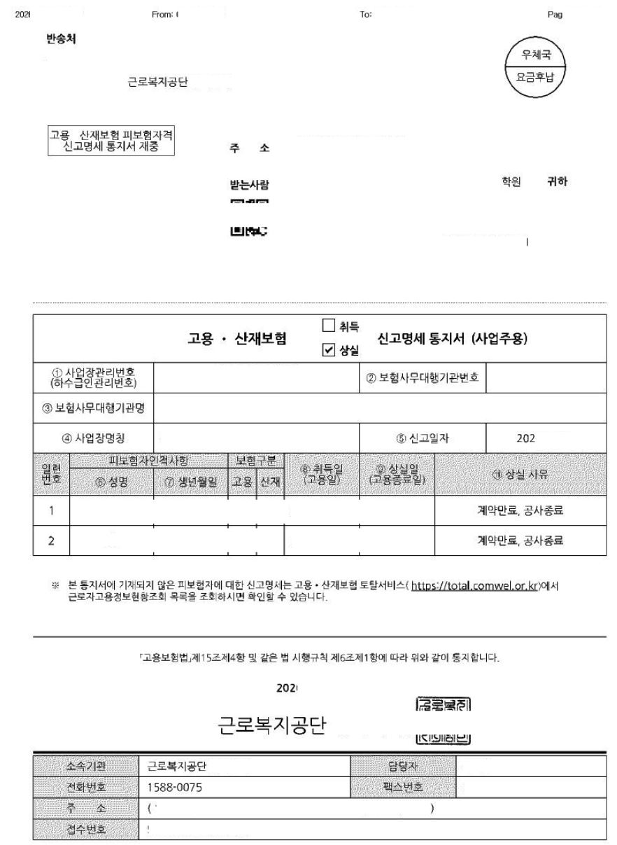 피보험자격 상실신고 사실통지서